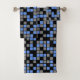 Cornflower Blue, Black, Grey Random Mosaic Squares Bath Towel Set