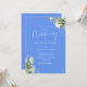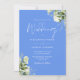 Cornflower Blue Greenery Leaves Monogram Wedding Invitation