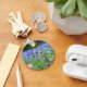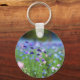 A field of cornflowers in shades of deep and pale blue, purple, lavender, and pink, with pale green leaves.