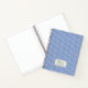 Personalised stylish notebook with your name, the title and date in elegant offblack calligraphy features a cornflower blue stripes pattern background. Perfect for sketching or keeping track of notes and ideas. Exclusively designed for you by Happy Dolphin Studio!