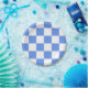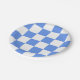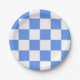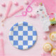 Paper plate with a cornflower blue and white chequered pattern. Perfect for any gathering.