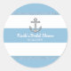 Cornflower Blue & White Stripes Diamond Anchor Classic Round Sticker