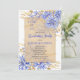 Budget cottagecore style "Graduation Party" script text design featuring cornflower blue wildflowers with wheat accents in both the floral underlay and overlay on front with an aged look vintage paper panel for your party details. The "Graduation Party" text is uneditable except by designer. The back features a beautiful cornflower blue wildflower and wheat bouquet. Simply add your details to complete the design. Composite design by Holiday Hearts Designs (rights reserved).