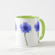 ringer mug with blue cornflowers against a white background - buy a set of one wild flower or chose from a variety of wild flower mugs all with fresh green handles