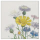 Old-fashioned botanical illustration of cornflowers in blue, yellow and white.