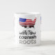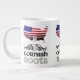 Map of the USA with roots, and blended American and Cornwall flags and the text Cornish Roots underneath.
