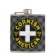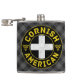 Circle design in black, yellow and white featuring the Cornish flag and the Duke of Cornwall ensigns. With the text Cornish American around it.