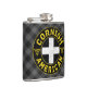 The flask itself is fine. It’s a cheap flask, obviously bought in bulk, however am prepared to overlook that. Given that it is a personalized item, I would have liked to have seen gift boxing instead of the generic packaging. Terrible printing, and/or quality. It’s a cheap, tacky vinyl. It is not cut straight and is also applied in a way that it is overhanging the bottom, causing the glue to catch on items and it will eventually roll and tear, damaging the wrap.