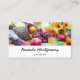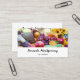 Business cards with a photograph of a table filled with natures bounty. Set with cornucopia, colourful harvest vegetables and fruits.