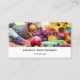 Business cards with a photograph of a table filled with natures bounty. Set with cornucopia, and colourful harvest vegetables and fruits.