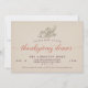This classic invitation features a cornucopia illustration along with elegant burnt orange and maroon typography to invite friends and family to Thanksgiving dinner. Like the front, the back has a classic parchment paper look.
