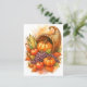 Celebrate the spirit of abundance with this elegant Thanksgiving postcard featuring a watercolor-style cornucopia filled with pumpkins, apples, corn, grapes, and fall leaves.
