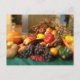 Cornucopia, horn of plenty, fruits and vegetales including pumpkins, grapes, potatoes, oranges, peppers, apples and lemons.