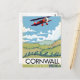 Cornwall For a Break, Beautiful vintage style travel poster art print of a retro style red bi plane flying over the landscape.