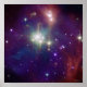 This composite image shows the Coronet in X-rays from Chandra (purple) and infrared emission from Spitzer (orange, green, and cyan). The Spitzer image shows young stars plus diffuse emission from dust. In the Chandra data only, many of these young stars appear as blue objects, revealing their output of high-energy X-rays and the amount of obscuring dust and gas in the region. | "Smithsonian" and the Smithsonian logo are registered trademarks owned by Smithsonian Institution.