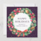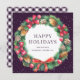 Corporate Business Purple Gingham Plaid Wreath Holiday Card