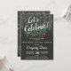 Celebrate your holiday office party with this hand painted red and green watercolor and gouache mistletoe, pine branch, holy branch and leaf on editable grey with an elegant and modern script typography with a white sparkles string lights.
