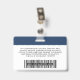 Easily personalise this Custom Employee Name Badge with Photo, Scan Bar Code and business company logo, featuring persons name, occupation, optional identity bar code, with metal clip included. A branded badge useful to identify staff, visitors or guests, docror, nurse and medical professions. A simple business design with large photo in navy blue and white fully customisable in front and back sizes, in any colour background, sans-serif basic and modern fonts and a professional and clear look. An useful tool for corporate events, reunions, renews and celebrations. Create more corporate photo badge identification card in different colours for any category you need to identify: staff, visitors or guests. Avaiable with or without lanyard, metal clip or with retractable. No minimum order.