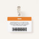 Easily personalise this Custom Employee Name Badge with Photo, Scan Bar Code and business company logo, featuring persons name, occupation, optional identity bar code, with metal clip included. A branded badge useful to identify staff, visitors or guests, docror, nurse and medical professions. A simple business design with large photo in tangerine orange and white fully customisable in front and back sizes, in any colour background, sans-serif basic and modern fonts and a professional and clear look. An useful tool for corporate events, reunions, renews and celebrations. Create more corporate photo badge identification card in different colours for any category you need to identify: staff, visitors or guests. Avaiable with or without lanyard, metal clip or with retractable. No minimum order.