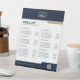 This professional and modern price list template features a clean, two column layout with elegant navy blue and gold accents. Perfect for small businesses, services, or product catalogs, it is designed for maximum clarity and organization. Easily display multiple categories and items, add your logo and customize the text to suit any business from consulting and salons to creative agencies and retail. Change the colors to match your brand and upload your logo.