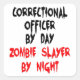This funny text design features the phrase "Correctional Officer by Day Zombie Slayer by Night" and is perfect for any correctional officer who loves zombies.