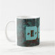Mug with a cool corroded metal effect printed texture in shades of green and brown. A customisable design for you to personalise with your own text, images and ideas. Please note that this is a printed digital art image, it does not shine or contain real metal.