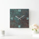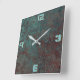 Clock with a cool corroded metal effect printed texture in shades of green and brown. A customisable design for you to personalise with your own text, images and ideas. Please note that this is a printed digital art image, it does not shine or contain real metal.