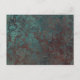 Postcard with a cool corroded metal effect printed texture in shades of green and brown. A customisable design for you to personalise with your own text, images and ideas. Please note that this is a printed digital art image, it does not shine or contain real metal.