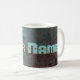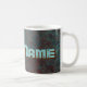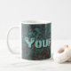 Mug with a cool corroded metal effect printed texture in shades of green and brown. A customisable design for you to personalise with your own text, images and ideas. Please note that this is a printed digital art image, it does not shine or contain real metal.