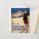 Poster showing a woman posed on ski slopes at Cortina d'Ampezzo.
