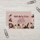 A border of cosmetic products on a dark peach background creates an outstanding business card for a cosmetician.