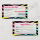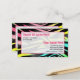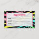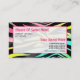 A cosmetologist / salon business card featuring a neon zebra print background. Personalise the front with your business contact information. Use the back to write appointment information.