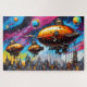 {{{ AI ART }}} Three airships flying in the cosmic sky above a city skyline.