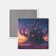 Magnet of a Castle inspired in the literary works of H. P. Lovecraft. Through time and space and the gulfs of stars beyond the prime material plane, over the borders of the Universe which expand further through the vast nothingness of infinity, you will find this place. A world where the fiery Sun dawns just as the gibbous Moon brings the night. A land where light and shadow collide in a constant battle for total supremacy that ignites the skies in hues of contradicting colours. These are moors of sickly grass and poisonous flora, which have the power to attract the unwary through their particular hypnotising smells, and the resulting decayed carcasses of the innocent or careless serve as nutrients from which the structures arise... Before your eyes you see an architectural marvel of wonder and chaos. A castle, nonconforming to the laws by which we build, for the single and most unique quality that it is as much rock and mortar, as it is alive and sentient, and its nightmarish tentacled limbs can cause madness in the mind and soul of any dreamer who happens to wander into its midst, one unexpected night through the wrong door in the realms of slumber. This artwork was created with Leonardo.ai. The final touches were made by me using various image editors.