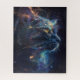 A cosmic-themed cat rendered in glowing streaks of light and sparkling stars gazes into the distance. the fur appears charged with galactic energy, creating a mystical and futuristic feline portrait.