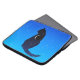 Laptop sleeve in a silhouette of an elegant sitting cat patterned with stars and a crescent moon on a starry sky background