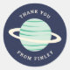Customisable birthday party favour stickers with a cute and simple planet illustration and curved text. This sticker is apart of the Cosmic Celebration Birthday Party Collection by Lisa McLean Designs.