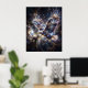 A powerful cosmic eagle soars through a dramatic starstorm, its wings spread wide and formed from radiant nebula clouds and glowing celestial energy. Feathers shimmer with starlight as dynamic motion trails follow its flight, creating a sense of freedom and dominance. The turbulent cosmic sky enhances the intensity and scale of the scene. This bold artwork symbolizes power, vision, and independence, making it ideal for statement interiors, office decor, and collectors of high-energy, inspirational wall art.