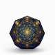 This is a stunning digital design that embodies the art of the Mandala and Sacred Geometry. It features intricate, luminous golden lines set against a deep, dark blue (navy) background, creating a dramatic and luxurious contrast. The design is centered around a brightly glowing core that radiates warm light. The complex structure combines star shapes, triangles, and flowing circular/spiral patterns, evoking a sense of depth, balance, and spirituality. It is an ideal representation of divine beauty, meditation, or opulence.
