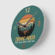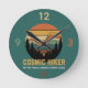 Cosmic Hiker Retro 70s Sunset Space Forest Stars Round Clock