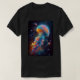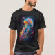 This surreal image features a vibrant jellyfish floating through a cosmic space setting. The jellyfish's translucent bell showcases bright hues of blue, pink, orange, and yellow, with its tentacles trailing behind in a cloud-like formation of similar colours. Surrounding the jellyfish are celestial bodies, including planets and stars, creating the impression of it drifting through space. This artwork beautifully merges marine life with outer space, resulting in a visually striking and imaginative piece.