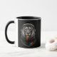 A powerful and mesmerising design showcasing a majestic lion in an astronaut helmet, staring forward with an intense and regal gaze. A brilliant cascade of colourful, liquid paint drips from the lion's mouth, creating a stunning visual contrast against the monochromatic tones of the spacesuit and the lion's detailed mane. This artwork masterfully fuses the strength and royalty of the king of the jungle with the mystery of outer space, resulting in a unique, bold, and artistic statement piece. It’s perfect for fans of space, wildlife, and surrealist art.