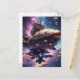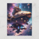 Cosmic pirate ship floating in space holiday postcard