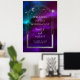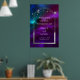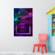 Cosmic Purple Teal Sun Moon Stars Welcome Sign Celestial Cosmic Galaxy Space Wedding Welcome Sign Poster features silver sun, moon and stars with a silver frame on colourful mystical purple, teal and blue cosmic background. Inside the frame is your custom text in elegant white calligraphy script. Designed for you by ©2024 Evco Studio www.zazzle.com/store/evcostudio