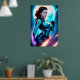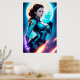 With bright neon flares and colorful space vistas, this awesome sci-fi pin-up poster will make your room pop with fantastic colors and excellent female space rangers!