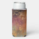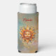 Stylish can cooler features AI-generated digital art illustration of a golden cosmic sun face on an abstract celestial background. Personalise with name or monogram