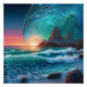 Experience the allure of the ocean at twilight with this multi-colored seascape abstract painting, a surreal sunset captured in opal, jade, and iridescent hues.