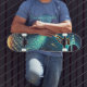 Blast off into style with the "Cosmic Trail" skateboard! Featuring a glowing astronaut performing tricks, leaving behind a stunning galaxy trail filled with stars, comets, and vibrant cosmic colours, this design is perfect for skaters who dream big and aim higher. With its unique vertical artwork and high-quality deck, this skateboard is built for both performance and artistic expression. Let the universe guide your next trick!