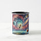 A surreal cosmic scene mug of a glowing traveller drifting through galaxies, surrounded by planets and shooting stars. A perfect design for dreamers and space exploration enthusiasts.