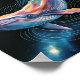 A mesmerising blend of abstract art and cosmic wonder. This surreal illustration features a vibrant whale gracefully navigating through a celestial expanse.